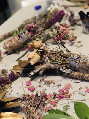 Come to our glorious gardens & beautiful Art Studios to create a stunning smudge stick using white sage & lovely dried flowers from our own gardens. In addition, you will make a fabulous feather wand adorned with a crystal & moon charm - this will help fan the flames of your smudge stick while cleansing your own homes & spaces.